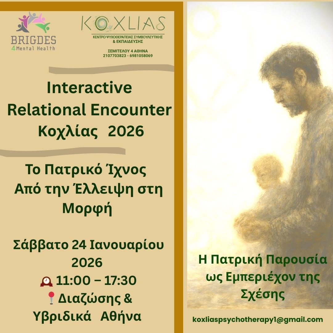 Η συνάντηση θα περιλαμβάνει θεωρητικές εισηγήσεις, διαλόγους, αλληλεπιδραστικά τμήματα και έναν χώρο επεξεργασίας της προσωπικής και συλλογικής εμπειρίας. Μέσα από την αλληλεπιδραστική σχεσιακή αντίληψη, τη σκέψη του Recalcati, τις έννοιες του Winnicott για το εμπεριέχον και τις σύγχρονες κλινικές αναγνώσεις, διερευνούμε πώς η πατρική μορφή λειτουργεί ως ενδιάμεσος τόπος όπου το υποκείμενο μπορεί να υπάρξει χωρίς να ακυρώνεται και να σχετίζεται χωρίς να διαλύεται, η συνάντηση επιδιώκει να φωτίσει την πατρότητα ως χώρο σχέσης, μεταμόρφωσης και αναστοχασμού.